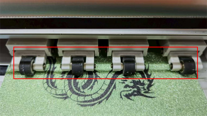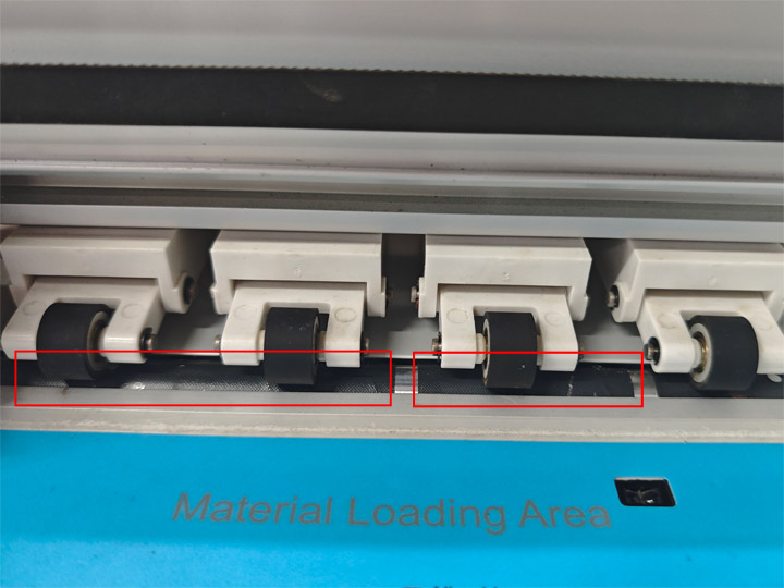 Make sure all pinch wheels firmly press on the cutting material, and their position is on the black part of the roller to prevent material shifting during cutting.